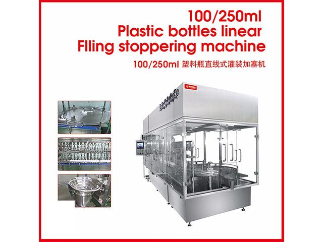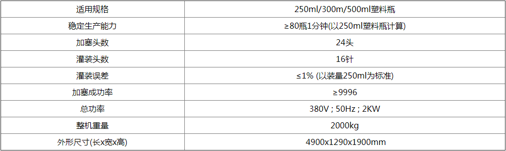 本機適用于塑料瓶瓶的液體灌裝和半加塞或全加塞.也可適用于其它藥 用瓶。本機可完成理瓶、輸瓶.定量灌裝、理塞、加等工序。可采用旋轉式取塞方式進行全加塞或半加塞已及采用可編程控制器(PLC),人機界面(觸摸屏),伺服系統(tǒng)進行控制,直線式傳送。
